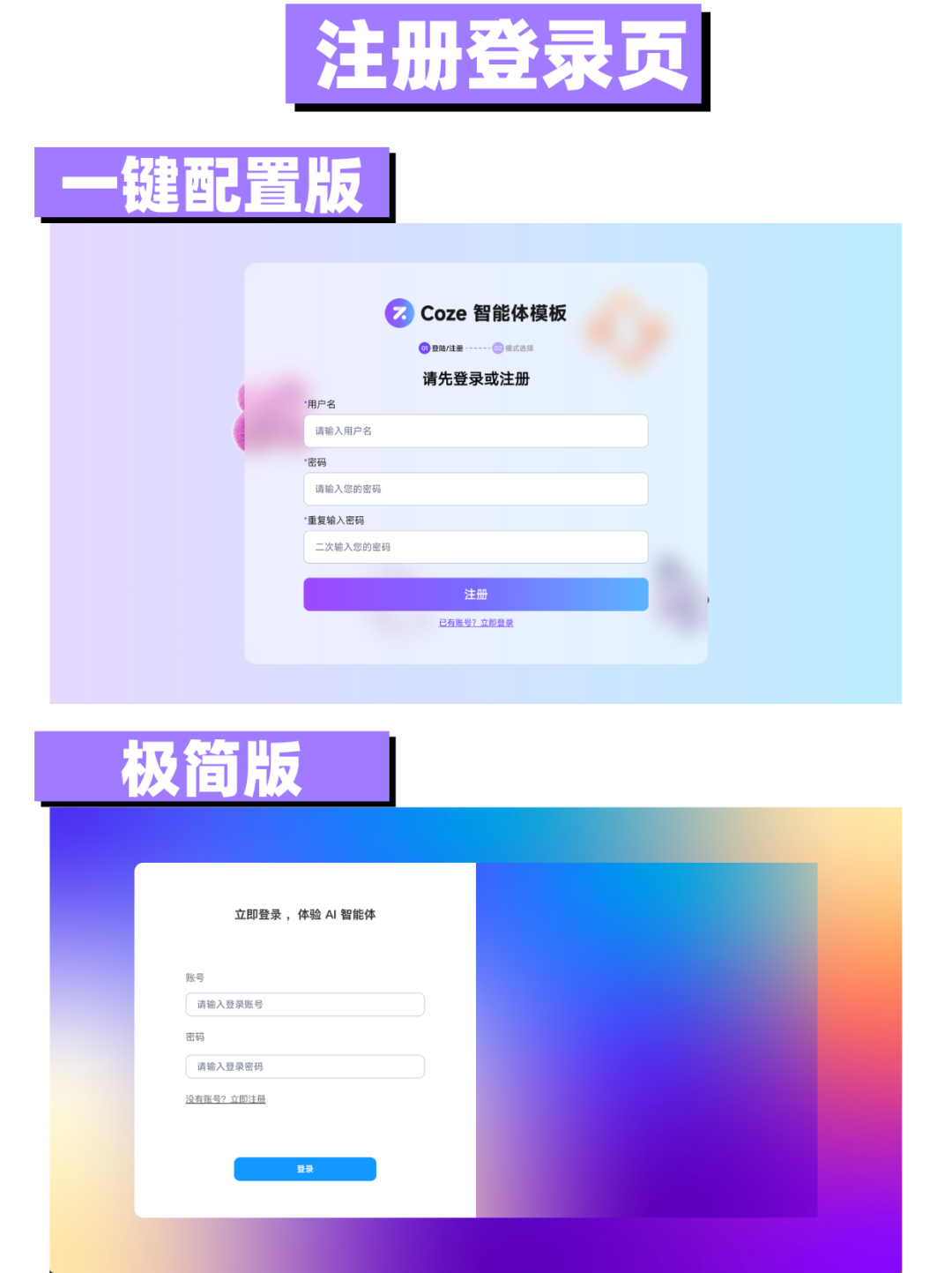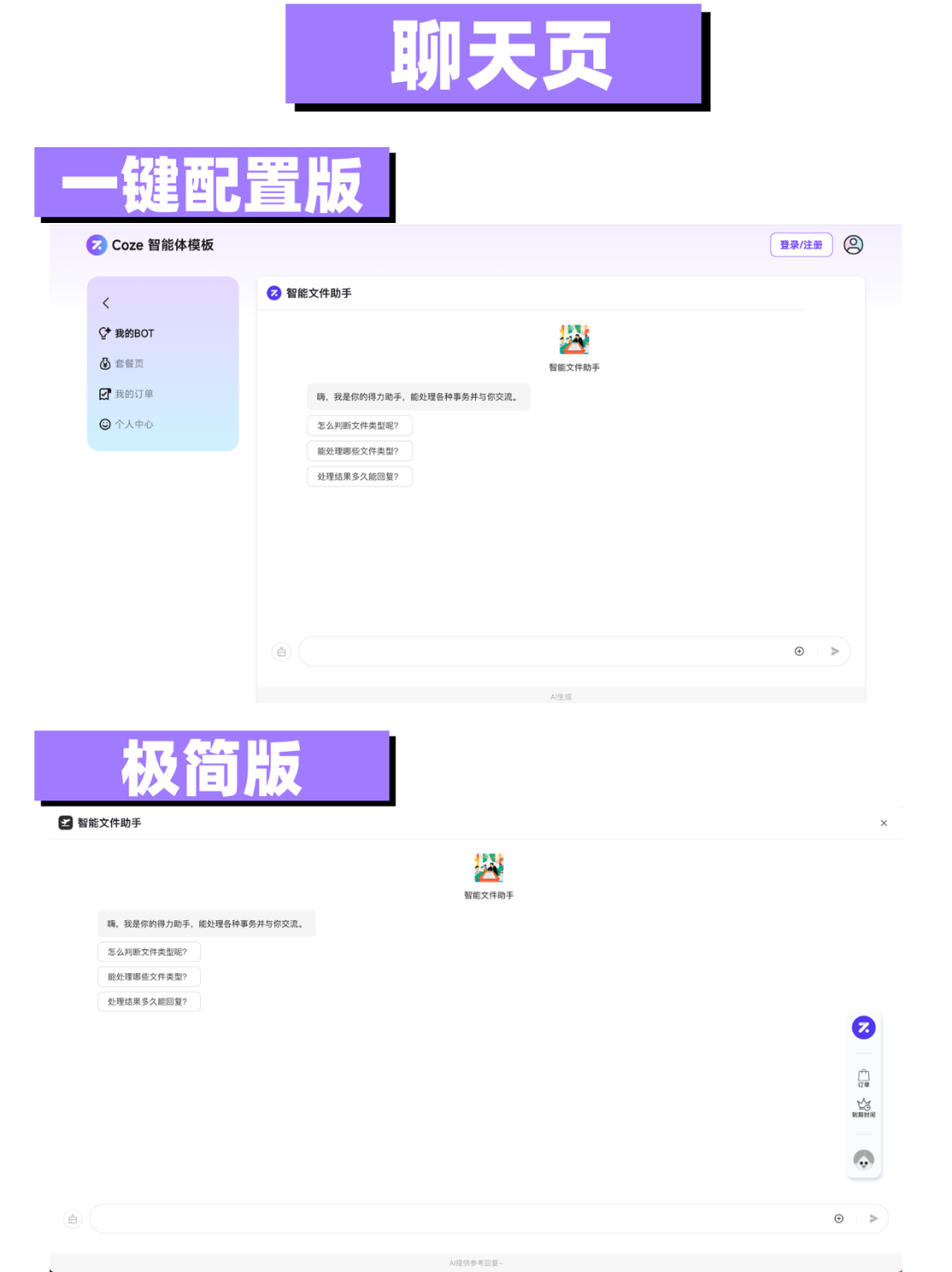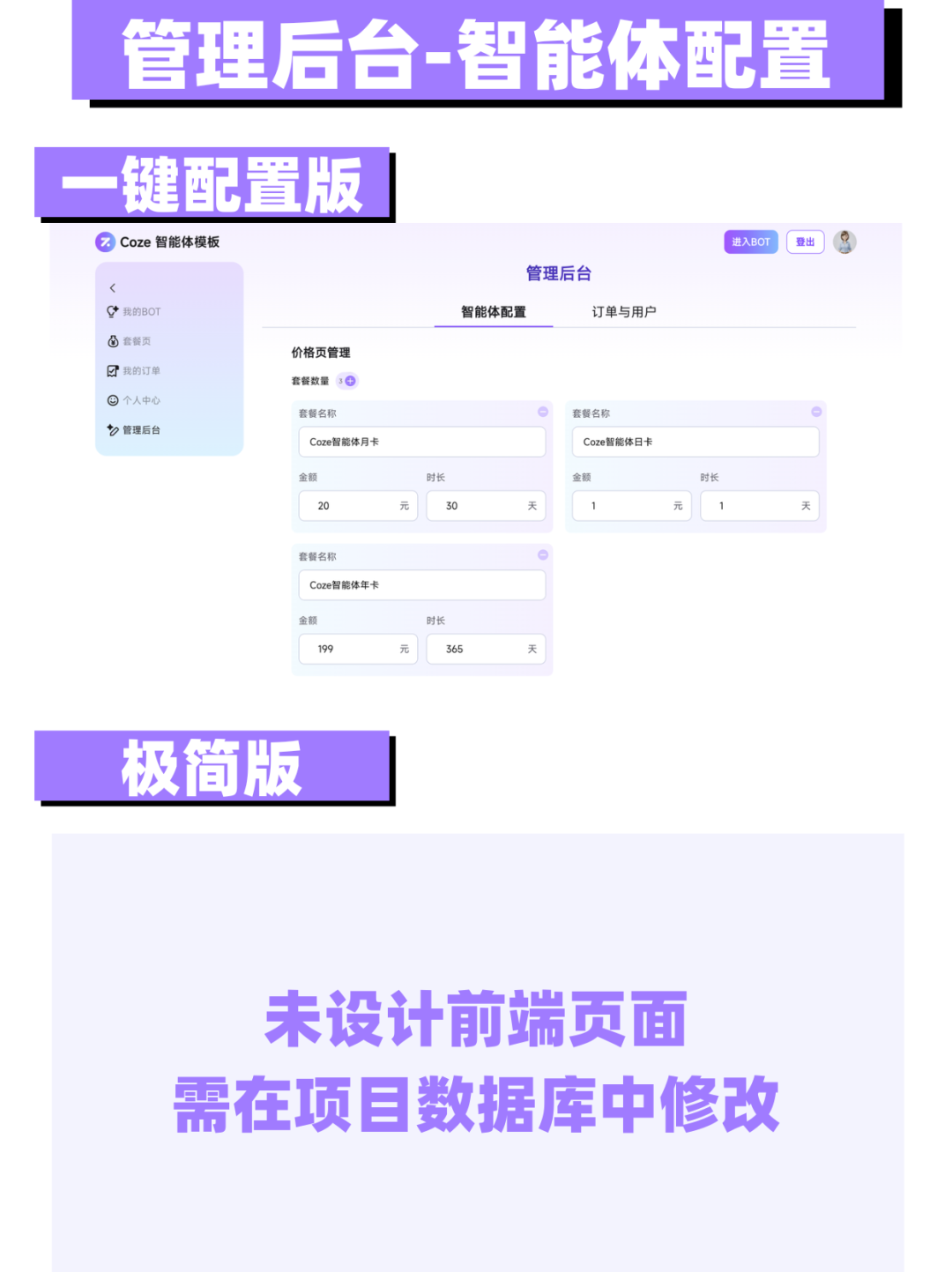 以下是“Coze变现模板(极简版)”与“Coze变现模板(一键配置版)”对比: