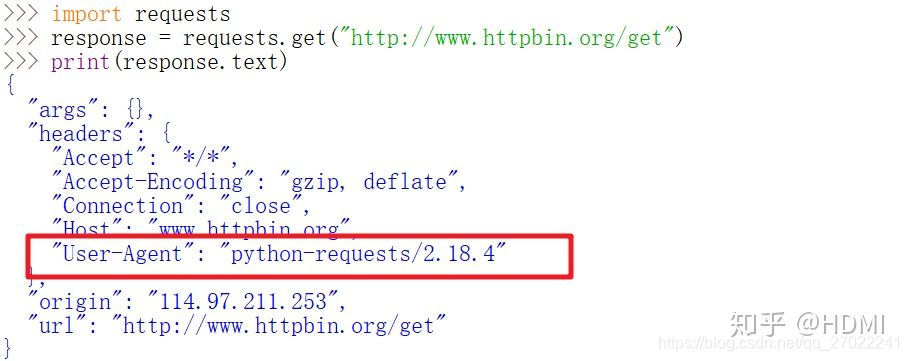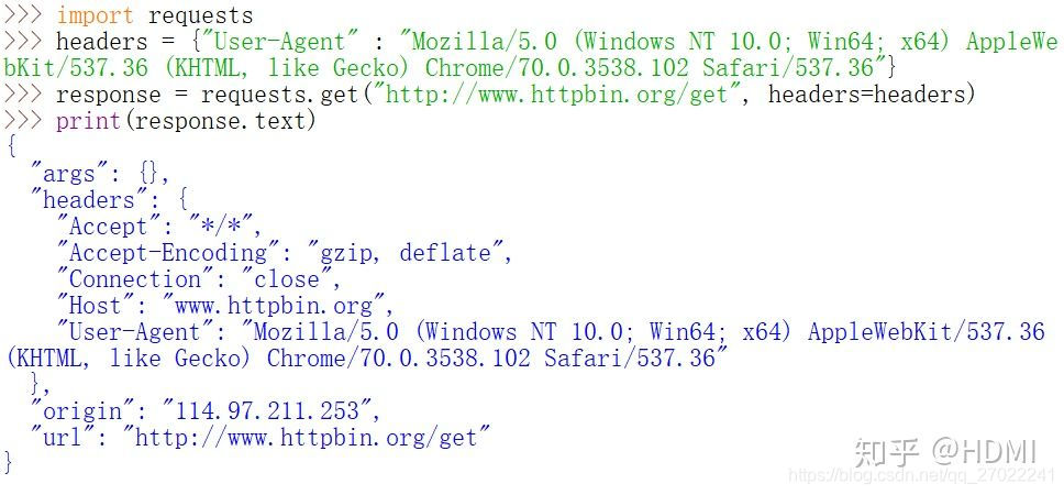 可以看到,User-Agent直接显示为requests的版本号,接下来我们加入User-Agent试试。