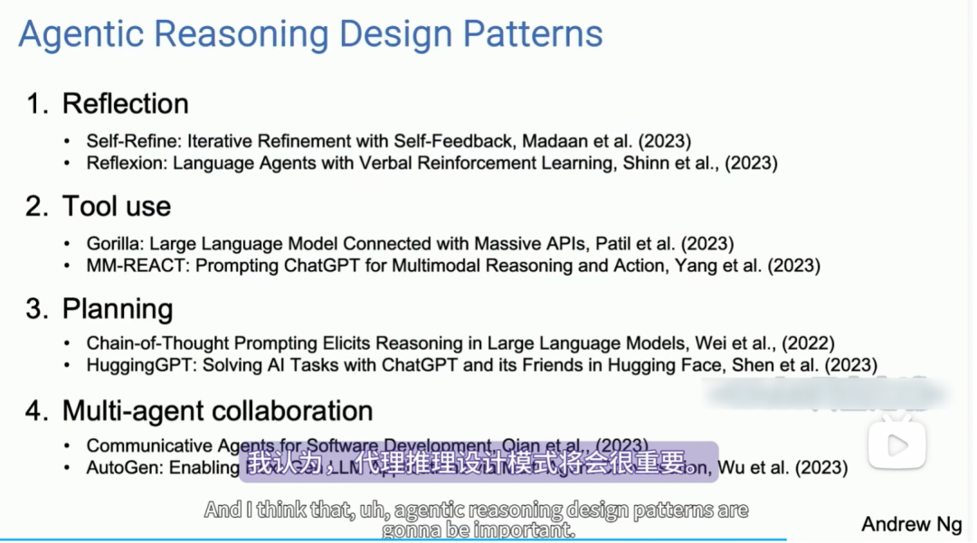 已经存在的不同设计模式(反思、工具使用、规划和多代理协作)表明,AI代理的应用正变得越来越精细和广泛。