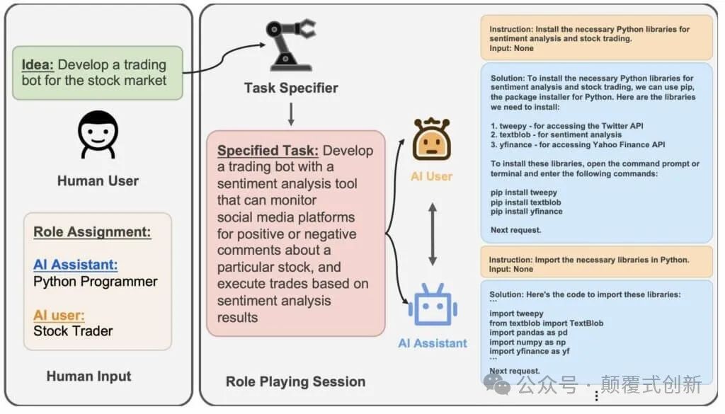 一切都始于人类定义的任务。该框架利用 LLM 的力量动态分配角色给代理人,指定和开发复杂任务,并安排角色扮演场景,以促进代理人之间的协作。这就像是为人工智能设计的戏剧。