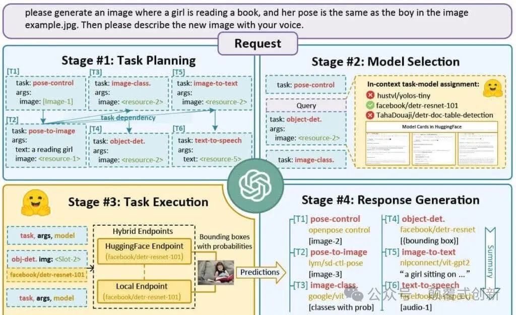 拥有对 HuggingFace 平台上数十种专门模型的访问权限,JARVIS 利用 ChatGPT 的推理能力来应用最佳模型到给定的任务上。这使得它对各种任务具有相当迷人的灵活性,从简单的摘要到目标检测都能胜任。