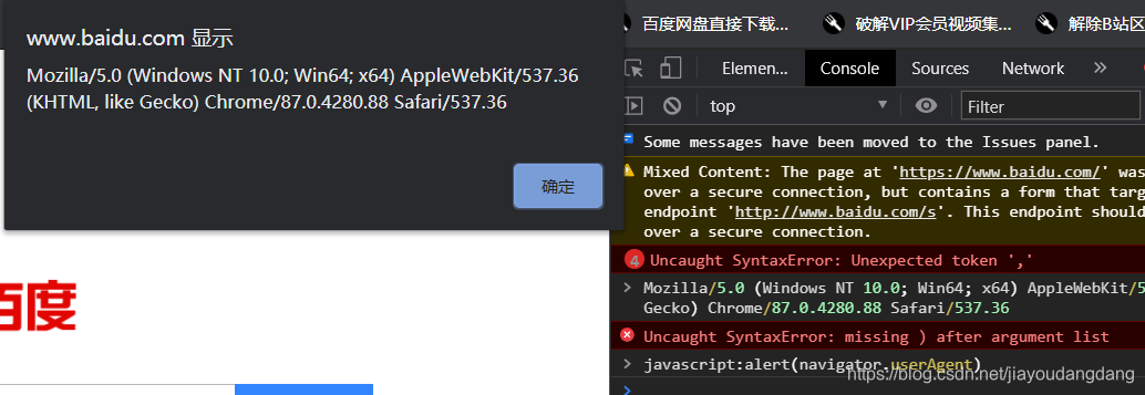 查看chrome的UserAgent打开浏览器控制台,输入javascript:alert(navigator.userAgent)即可