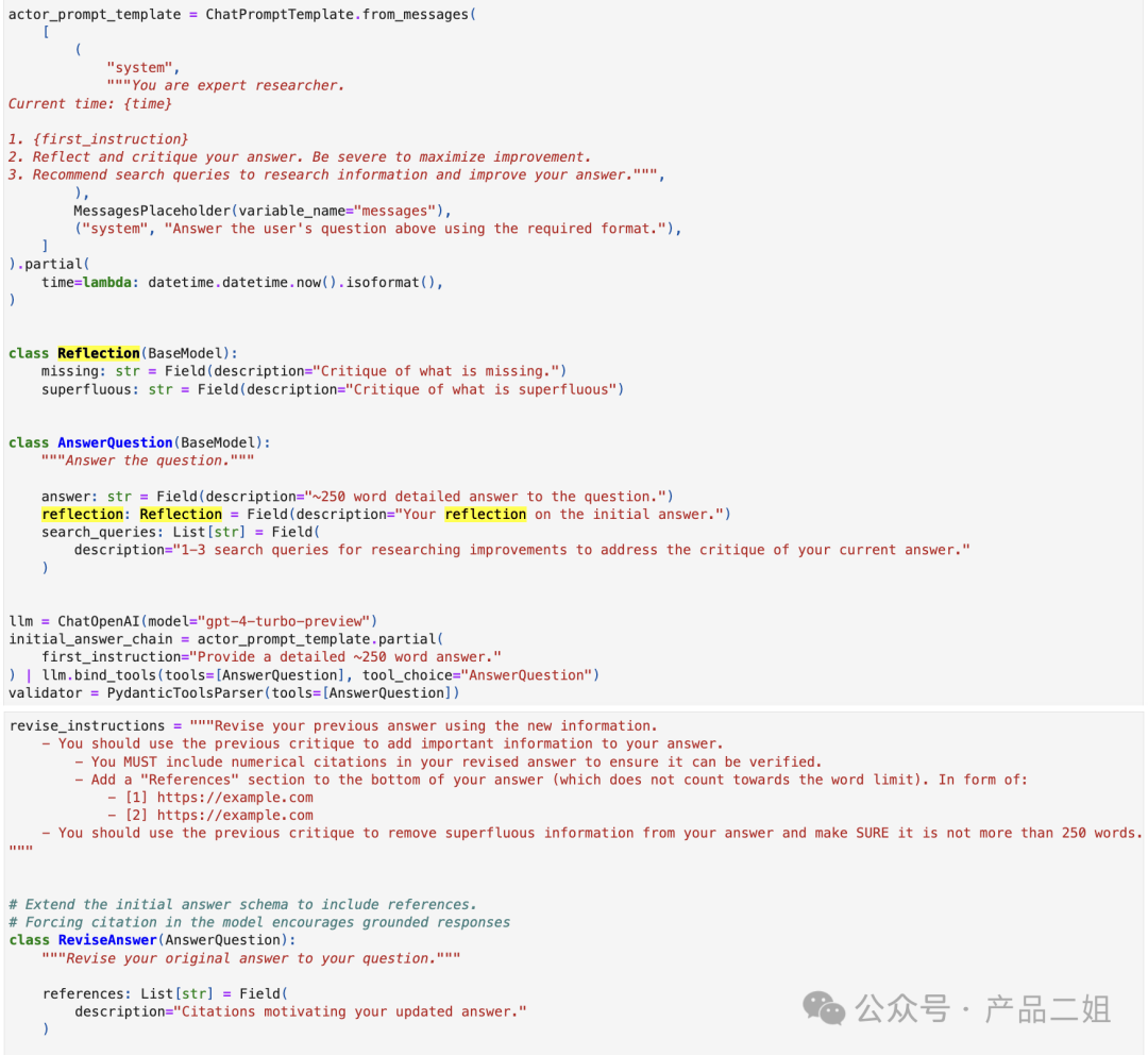 架构上,有一个 Responder:自带批判式思考的陈述 Critique;有一个 Revisor:以 Responder 中的批判式思考作为上下文参考对初始回答做修改。