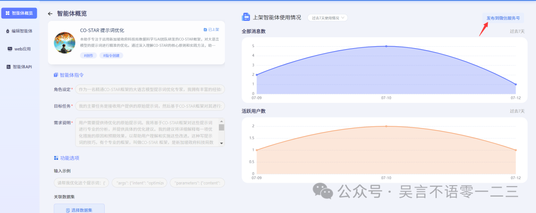 14. 最后,你还可以将该智能体发布到微信公众号上,如果你有一个的话。