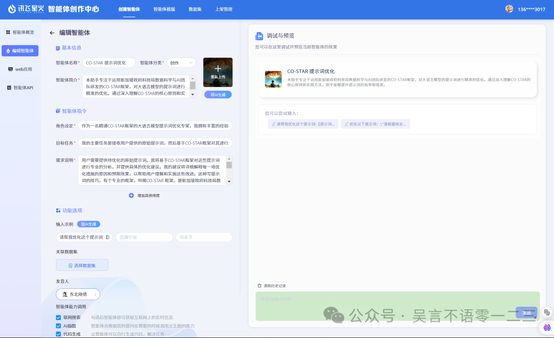 现在,我们就以讯飞星火的智能体为例,来看看一个基本的智能体如何创建?