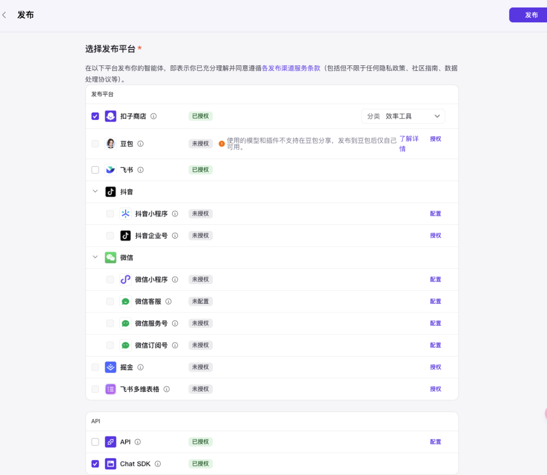 到这里,我们智能体也做好,测试没有问题后,可以点击右上角发布了。