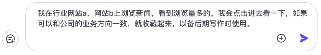 场景描述:日常在行业网站 a,网站 b 等上浏览文章,看到浏览量多的或者优质的文章,我会点击进去看一下,如果有不错的文章,就收藏起来,以备后期写作时使用。