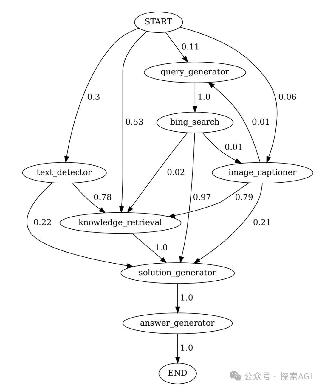 Chameleon 提出了工具转换的研究:在工具 X 之后,agent 调用工具 Y 的可能性有多大?下图展了一个工具转换的示例。如果两个工具经常一起使用,则可以将它们组合成一个更大的工具。如果 agent 意识到此信息,则 agent 本身可以组合初始工具以不断构建更复杂的工具。