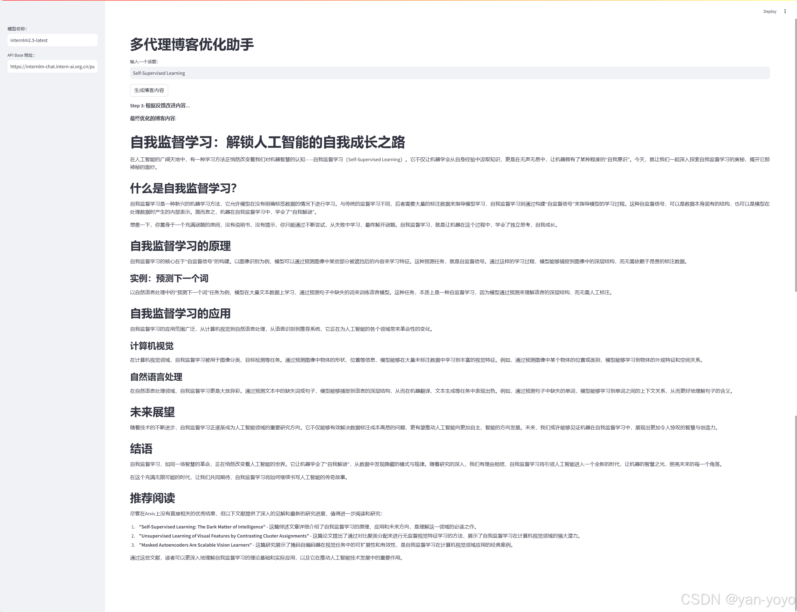 运行streamlit run multi_agents_api_web_demo.py,启动Web服务输入话题,比如Semi-Supervised Learning: