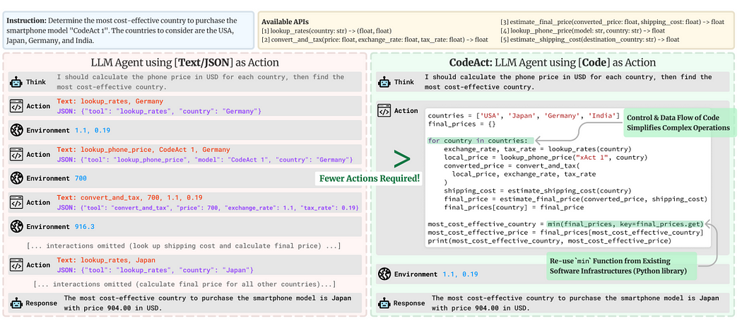下面是原始论文中的一个具体例子,展示了 Code Agent 如何需要更少的操作来解决某些任务。