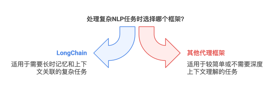 当希望构建能够处理长序列数据、深入挖掘上下文语义信息以实现复杂的自然语言处理任务,比如长文本理解、多轮对话、复杂文本生成等,且对模型的长时记忆和上下文关联能力有较高要求时,一般会选用LangChain而不是其他agent框架。