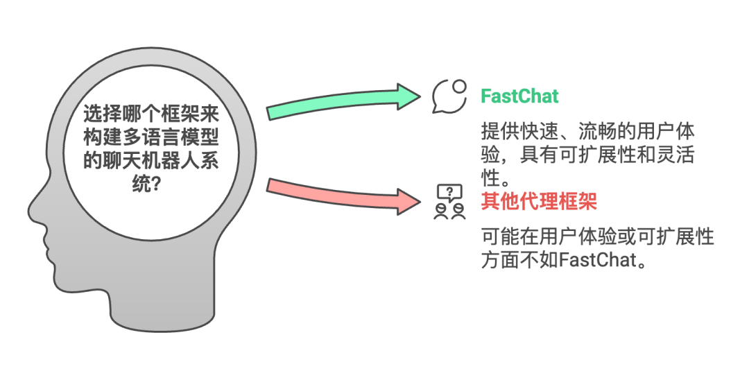 当需要快速搭建一个支持多种语言模型的聊天机器人系统,实现不同模型之间的便捷对比和交互,并且注重与用户的快速、流畅对话体验以及具备可扩展性和灵活性时,通常会选用FastChat而不是其他agent框架。