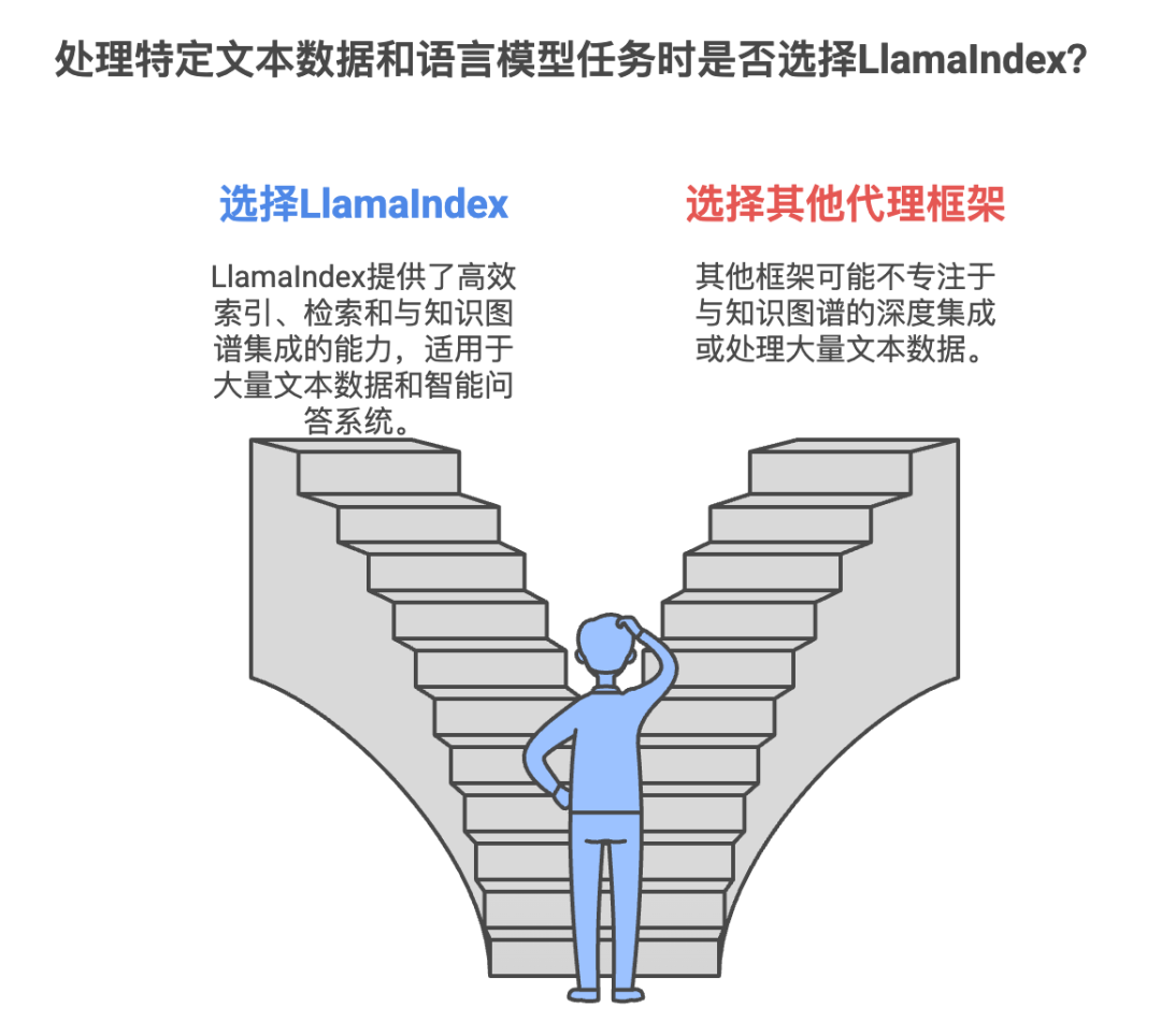 当你需要处理大量文本数据,对文档进行高效索引和检索,构建基于上下文的智能问答系统,或者希望将语言模型与自定义知识图谱等外部知识源深度融合以增强语言模型的知识能力时,一般会选用LlamaIndex而不是其他agent框架。