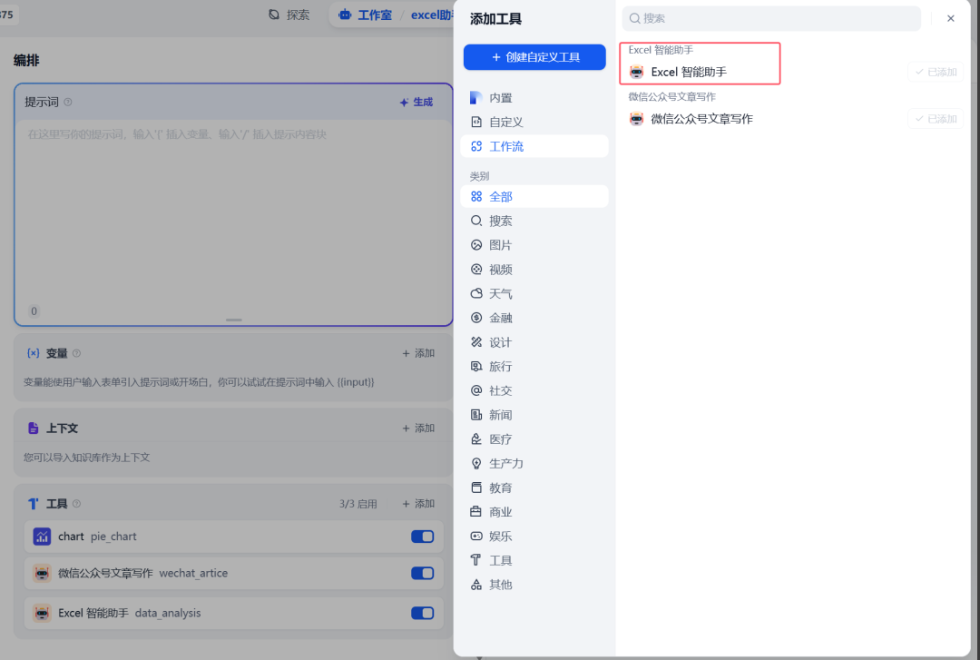 2.提取啥参数,就是用户的提示词中有没有提到想要什么样的图表结果,如果能提取到,赋值到新的变量exl_type。