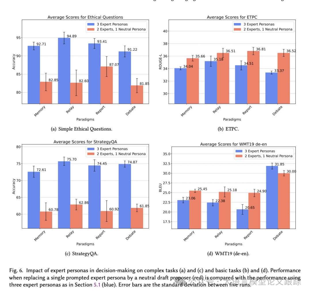 上图对比了使用三个人物角色和使用两个人物角色与一个中立草案提议者智能体时的任务表现。