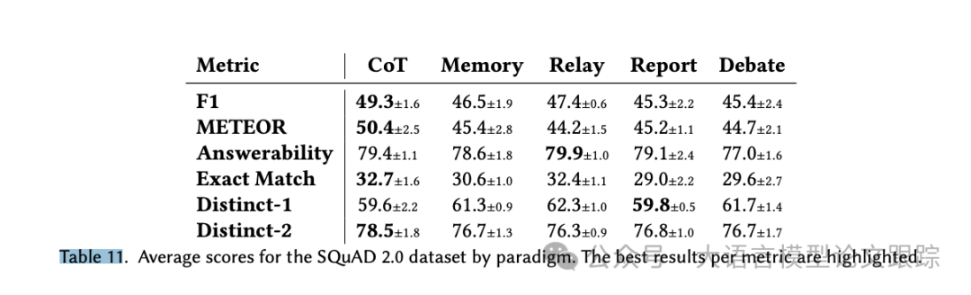 报告范式显著促进了性能提升。在智能体之间的信息可见性方面与其他范式不同。使用报告范式,一个智能体可以查看正在交换的所有消息,而另外两个智能体彼此从不交互。