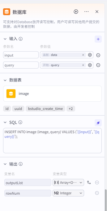 SQL语句的作用就是往数据库的image表里添加一条新记录,记录里包含两个内容:一个是图像的信息(比如路径或数据),另一个是相关的查询关键词。简单来说,就是把图像和它的描述存到数据库里,方便以后查找和使用。