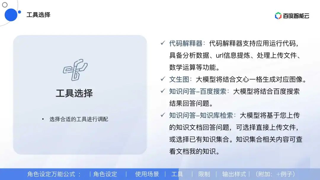 决定AI智能体的行为决定AI智能体的输出效果匹配场景使用。