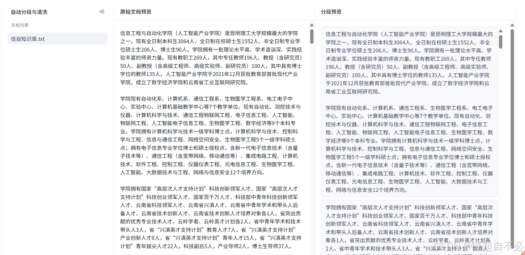上传之后需要解析知识库文本,可以选择快速解析与自动分段与清洗。
