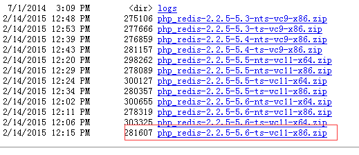 选择 php_redis-2.2.5-5.6-ts-vc11-x86.zip下载即可。