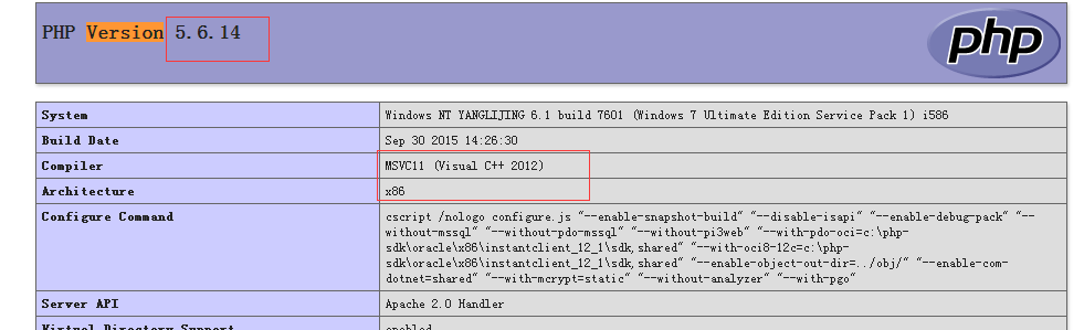 如图所示,我的环境信息:php 5.6 Architecture x86 Compiler MSVC11