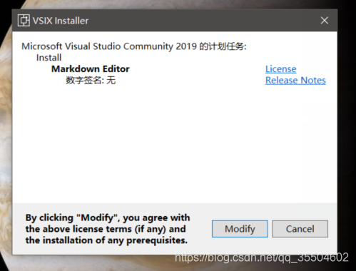 下载并安装完成后,退出VS,稍等片刻会出现安装程序,点击Modify