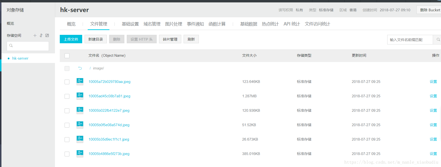 注:要设置图片的访问权限(文件ACL),我这里为了演示效果,设置的是公共读。