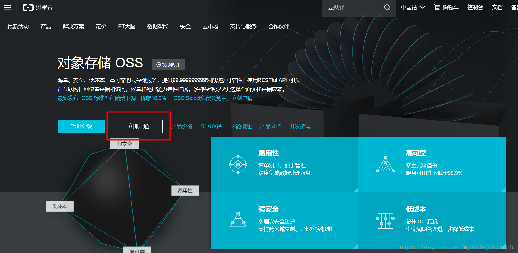 阿里云对象存储服务(Object Storage Service,简称OSS)为您提供基于网络的数据存取服务。使用OSS,您可以通过网络随时存储和调用包括文本、图片、音频和视频等在内的各种非结构化数据文件。