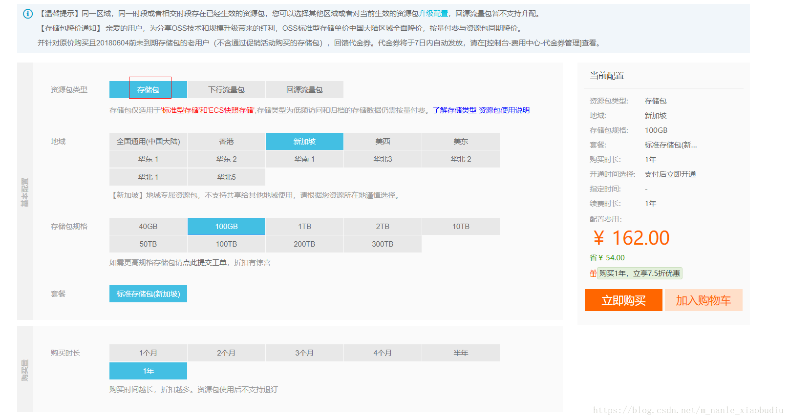 需要注意的是,建议您根据需求同时购买存储包和下行流量包。如果您同时开通了cdn加速,建议再购买回源流量包。如果不购买流量包,产生的费用就有些大了(就像用手机时,我们也需要购买流量包一样)。
