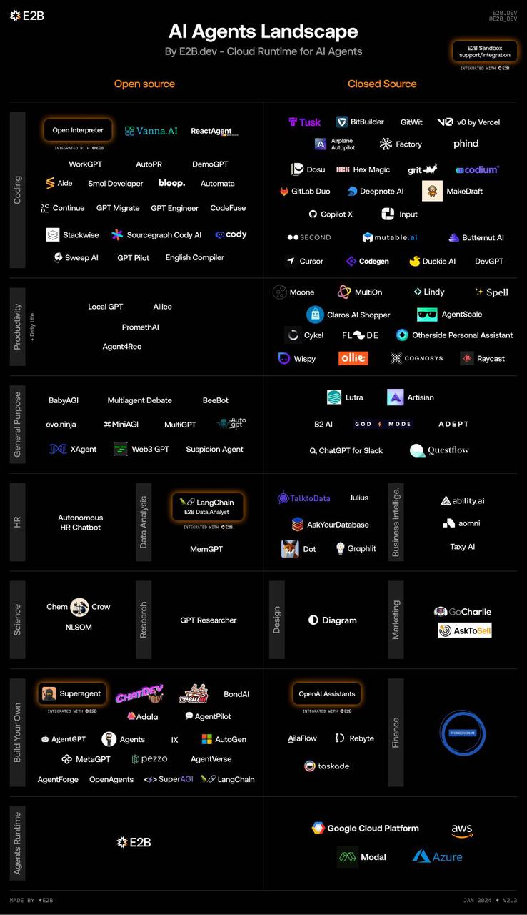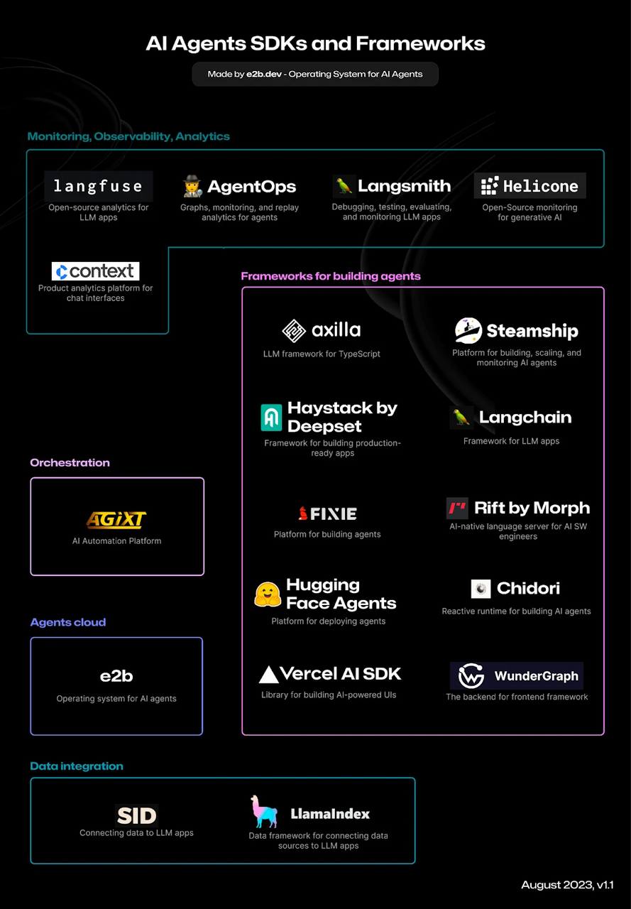 现实确实来的异常猛烈,当前AI Agent的爆火程度也验证了大佬们这一预言,目前国内外已经有较多的Agent平台以及开源框架的等,如下图: