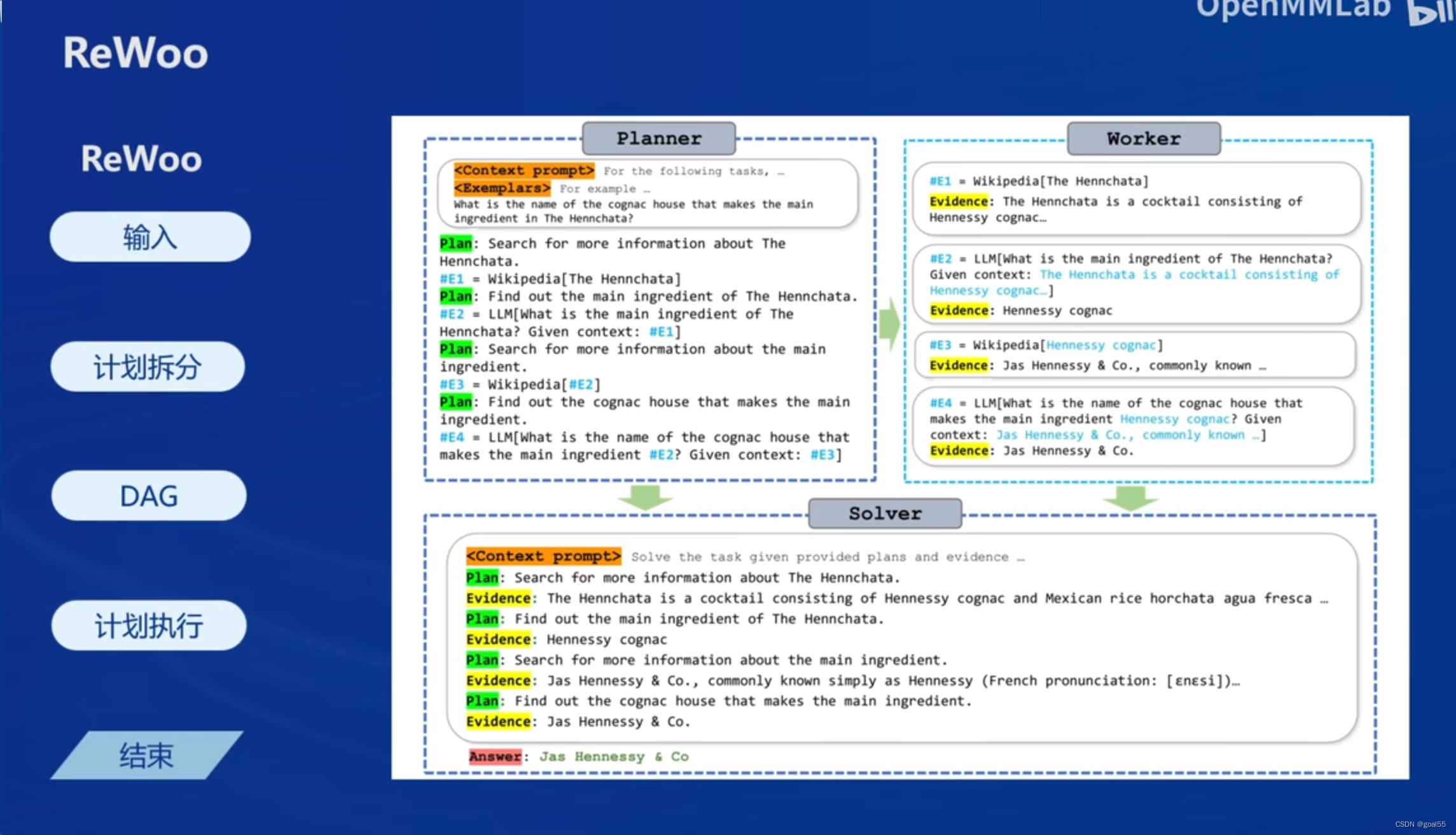 基本流程:将用户的输入做拆分,将各种工具之间的依赖形成一个有向无环图,并且在图中进行计划执行,直到拿到最终的结果
