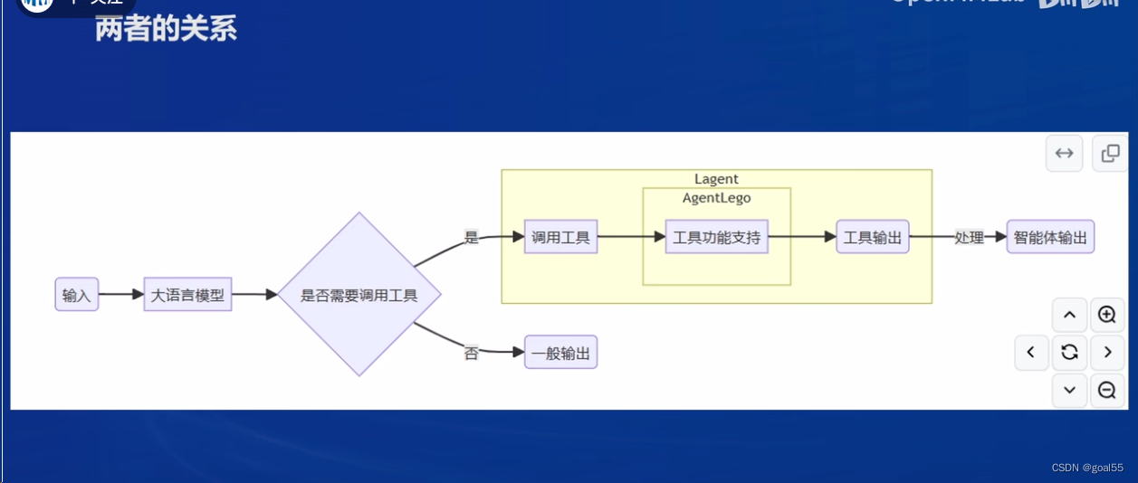 经过上面的介绍,我们可以发现,Lagent 是一个智能体框架,而 AgentLego 与大模型智能体并不直接相关,而是作为工具包,在相关智能体的功能支持模块发挥作用。
