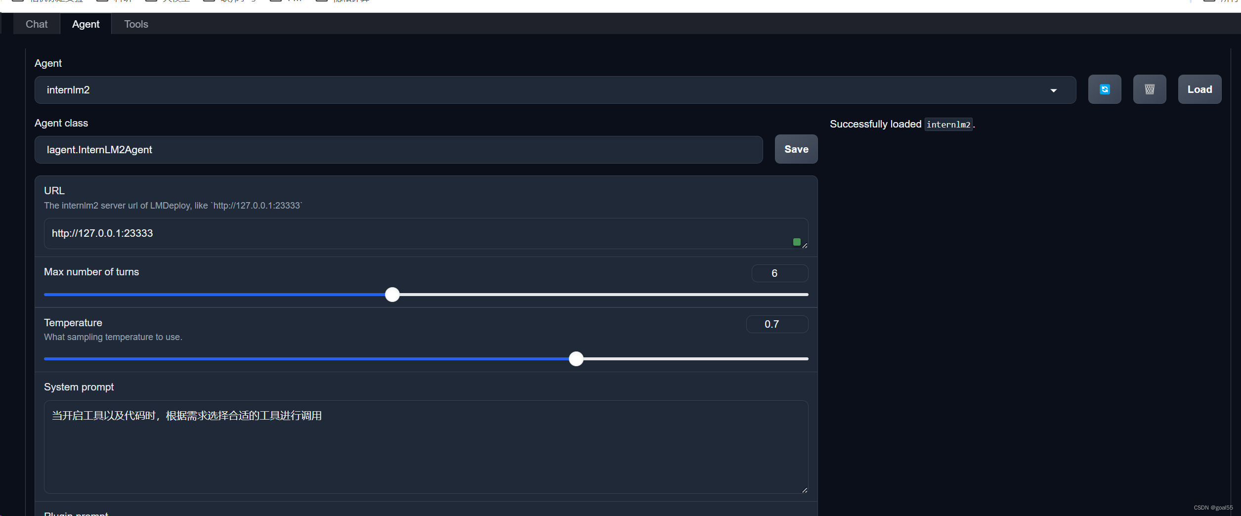 与2.2,2.3以及2.4节类似,我们在两个 terminal 中分别启动 LMDeploy 服务和 AgentLego 的 WebUI 以体验我们自定义的工具的效果。
