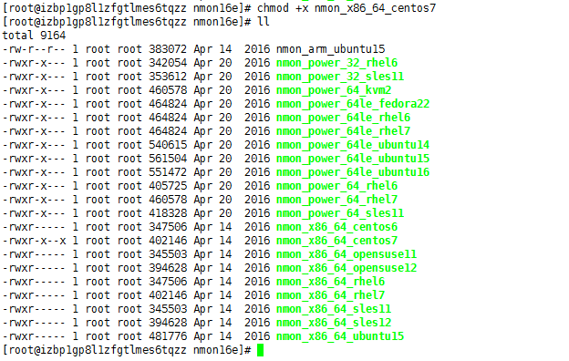 4.在nmon16e中找到 ..._centos7,并对它添加执行权限;