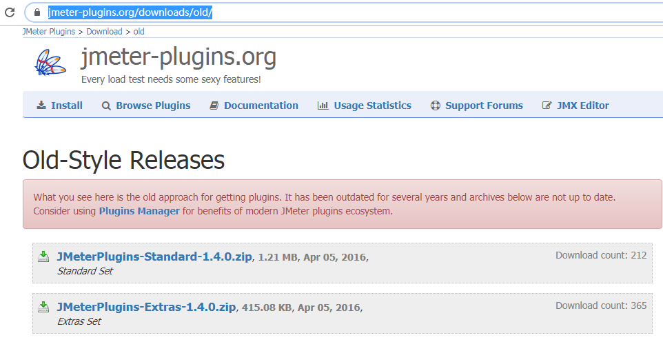 1.访问https://jmeter-plugins.org/install/Install/ 或 https://jmeter-plugins.org/downloads/old/,下载两个文件,JMeterPlugins-Extras和JMeterPlugins-Standard是客户端的;解压后将jar包放到jmeter的lib/ext目录下;