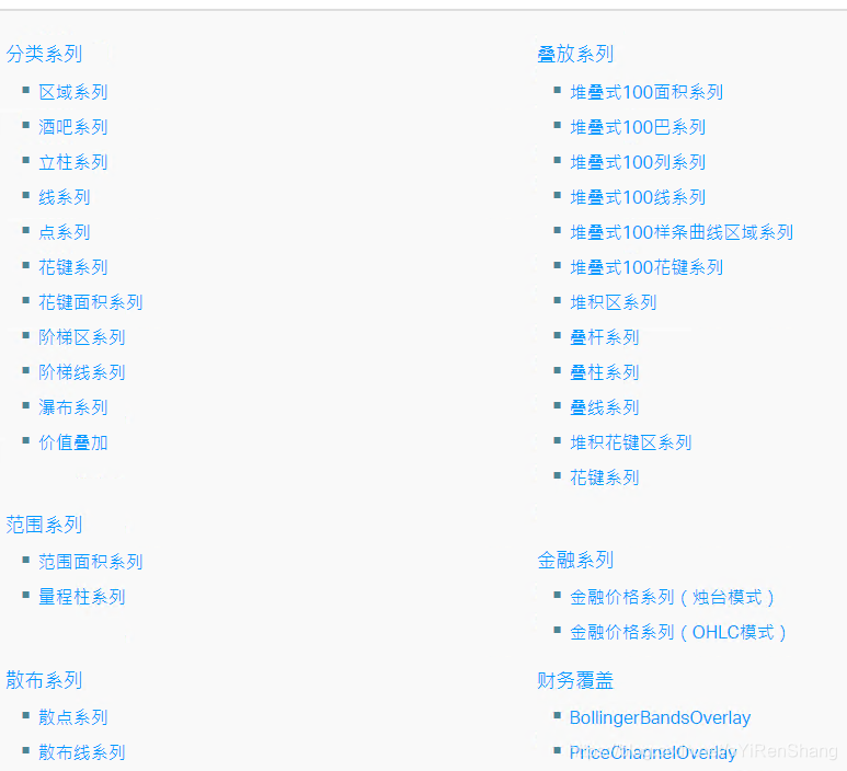 在一个DataChart的基础上,使用不同的Series,可以呈现不同样式的图表。当然,每个大类内的部分属性是通用的,不同大类下面的部分属性也是不一样的。