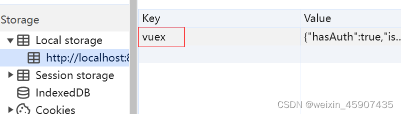 3、最后在控制台打开可以看到 sessionStorage 和 localStorage 中发现 vuex 对象