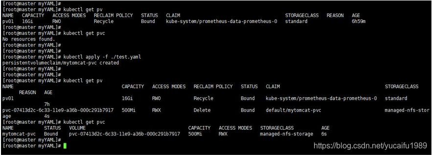当你应用这个PVC的时候,由于例子中的storageClassName也是managed-nfs-storage(当然这个名字你可以修改)就会去自动创建PV。
