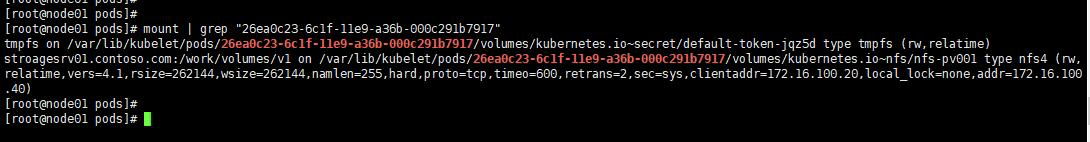 不过需要注意的是由于nfs文件存储不是一个块设备,所以宿主机系统需要扮演的就是nfs客户端角色,kubelet就是调用这个客户端工具来完成挂载的。