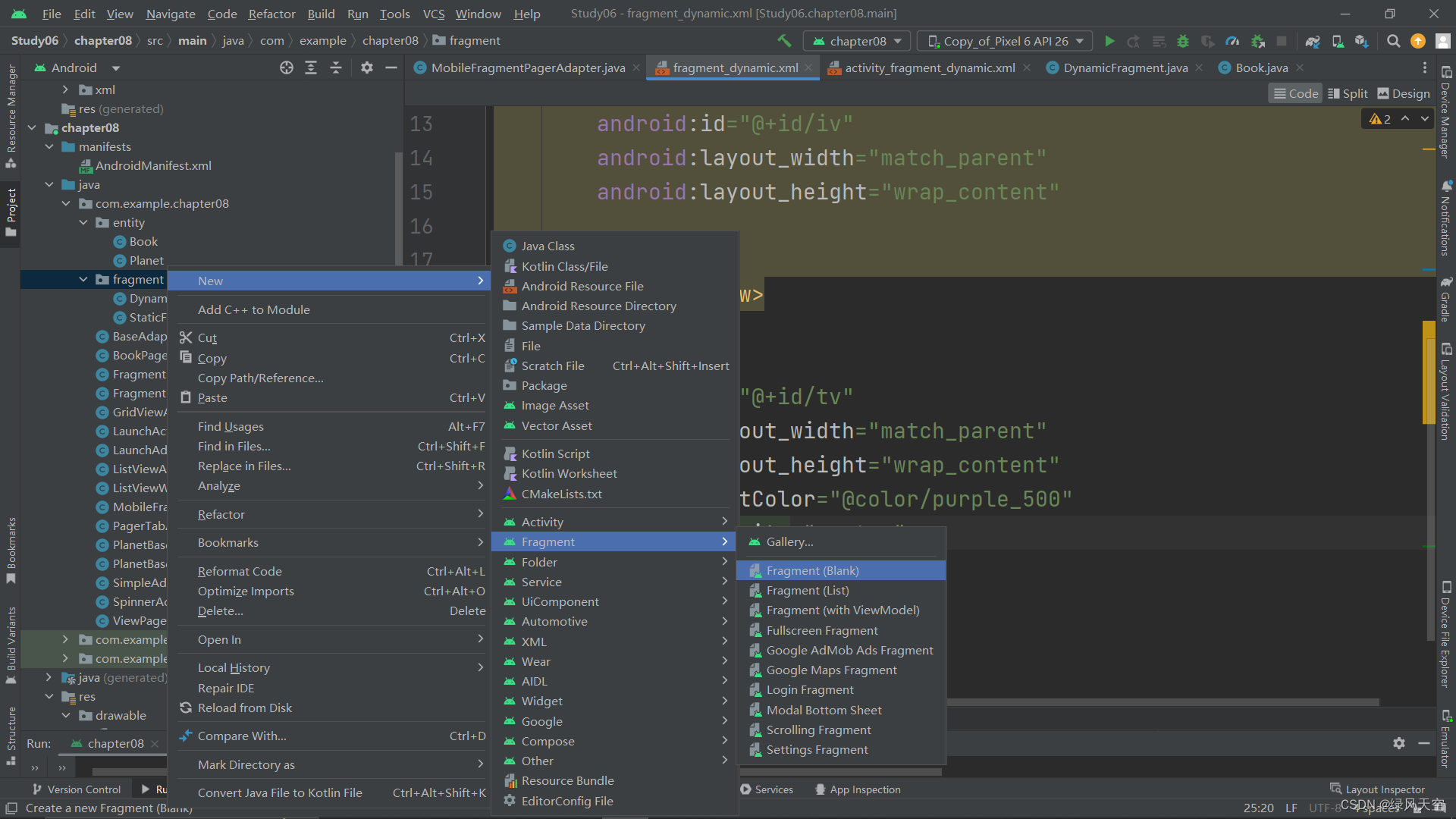 然后我们可以看到fragment.java里自动生成了