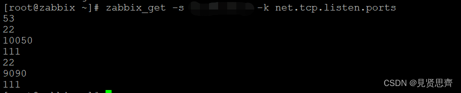 在第一步中设置了监控项TCP port,并在监控项中添加了指标key值为net.tcp.listen.ports,那么在被监控的zabbix-agent端需要配置获取net.tcp.listen.ports数据的命令。具体步骤如下
