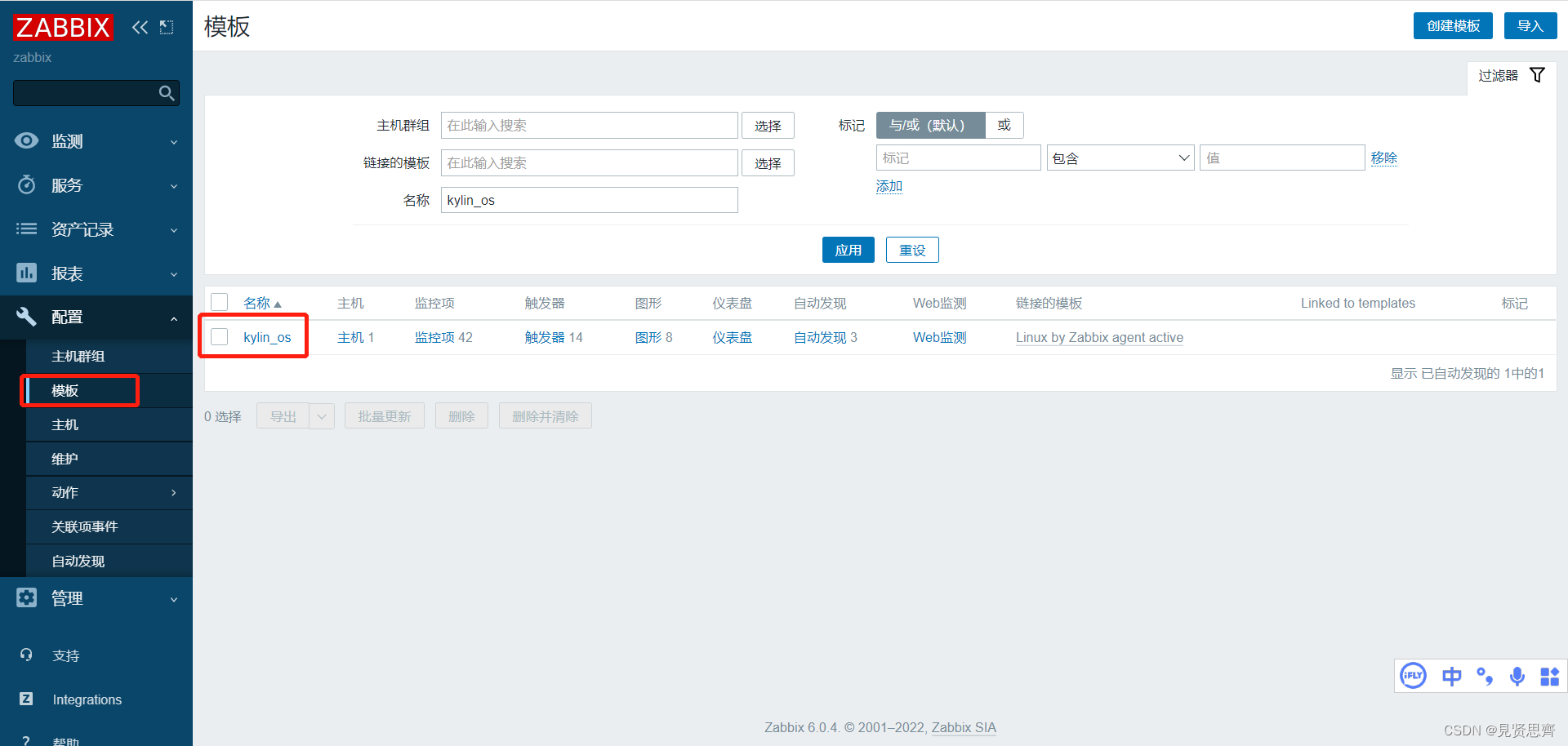 下面是制作kylin_os模板和添加新监控项的步骤。