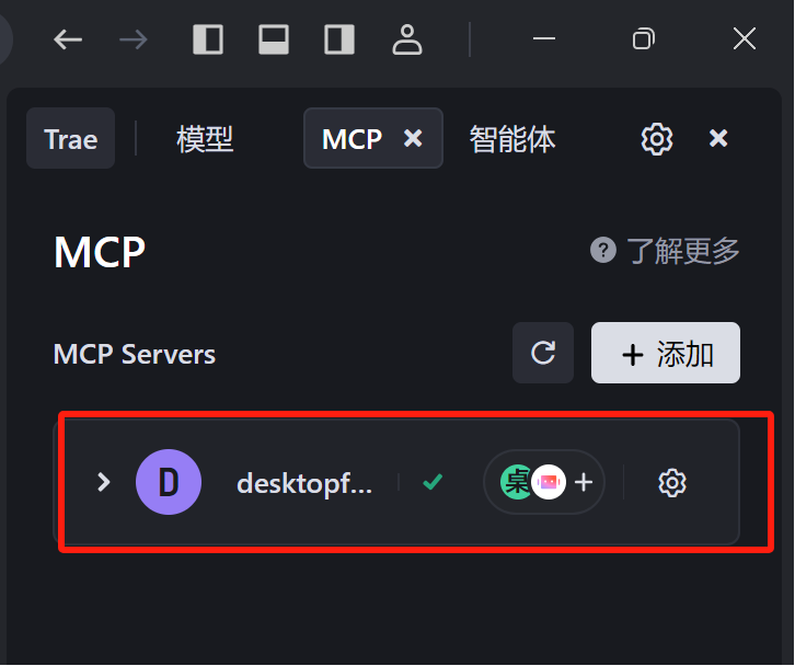 确定以后,会在MCP界面,显示新添加的MCP项。如下图所示: