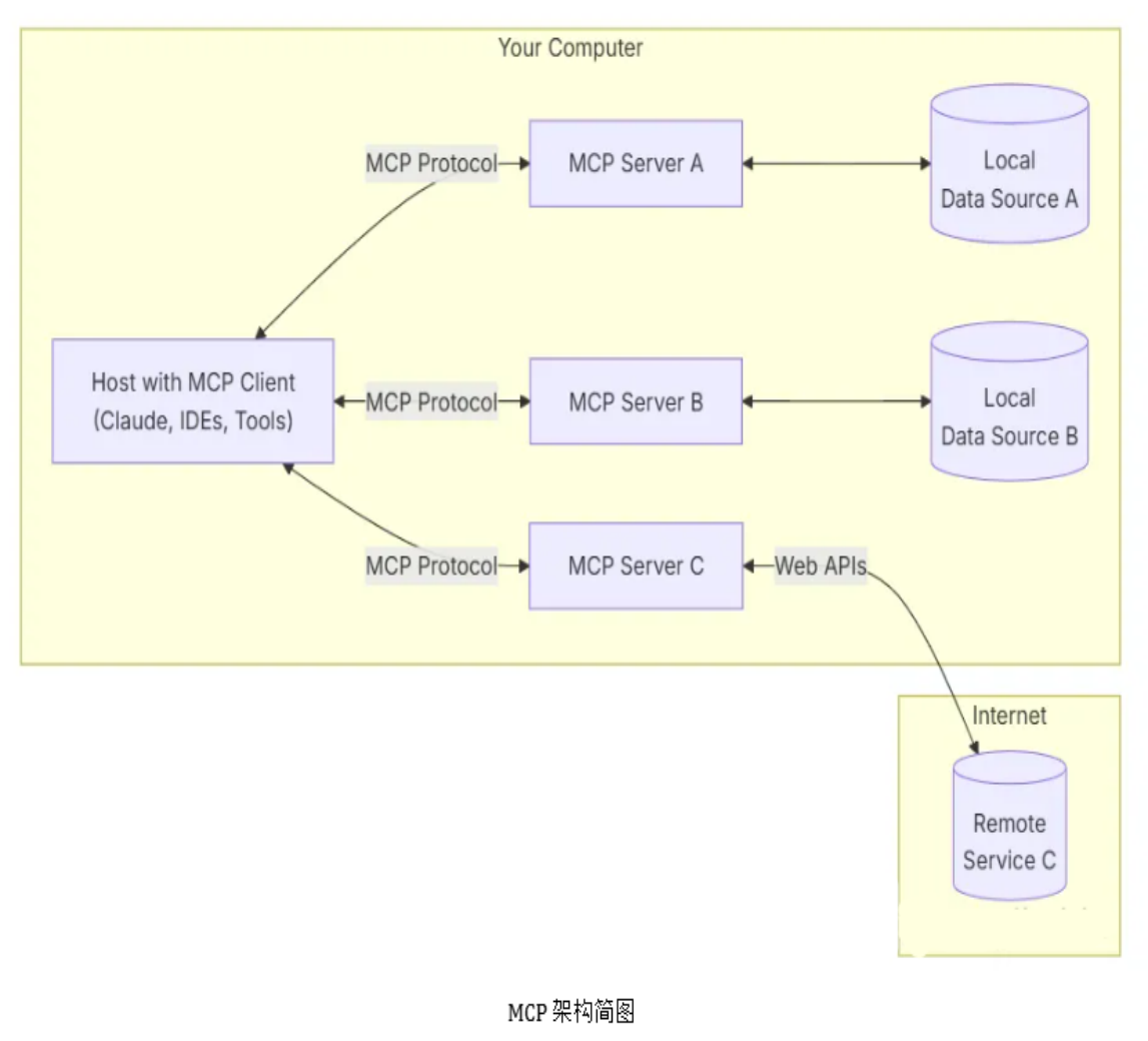 MCP采用客户端 - 服务器架构,主要由以下部分构成: