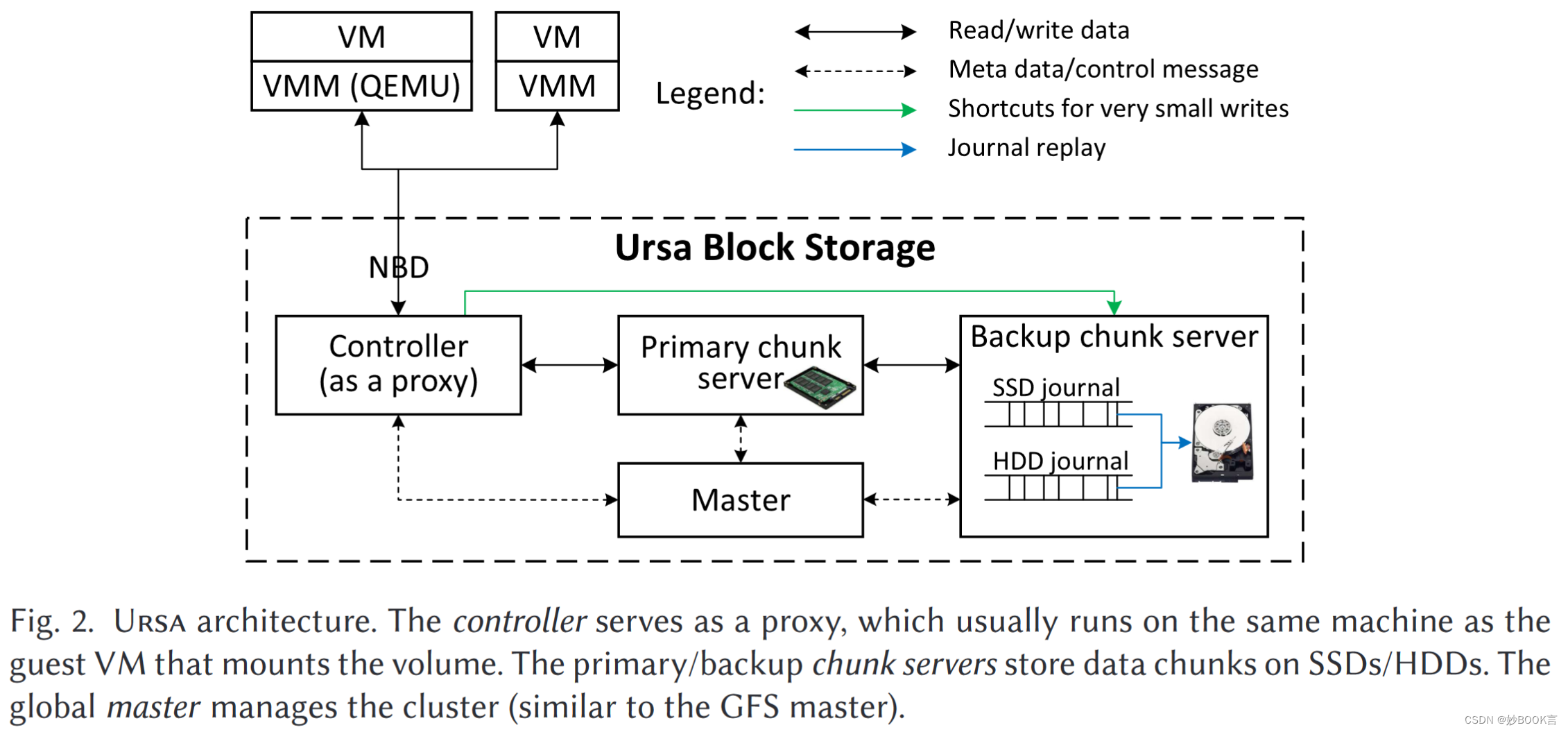 本文提出了分布式SSD-HDD混合存储结构 Ursa,将主副本存储在SSD上,将备份副本复制到HDD上,不使用SSD作为缓存层。