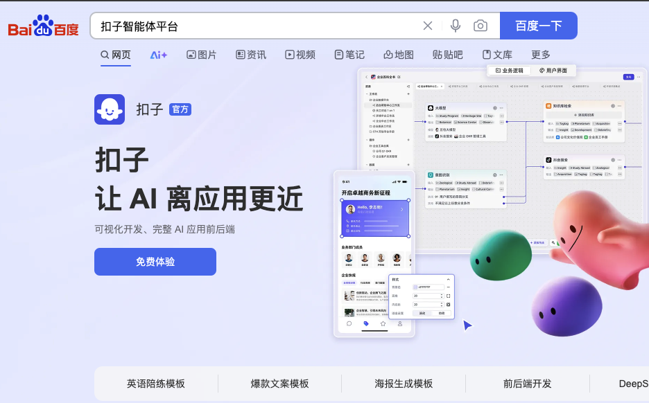 下面介绍公众号如何通过微先生助手接入扣子智能体回复。首先打开扣子官网:https://www.coze.cn (目前仅支持国内版coze),百度搜索 扣子智能体平台也能找到。