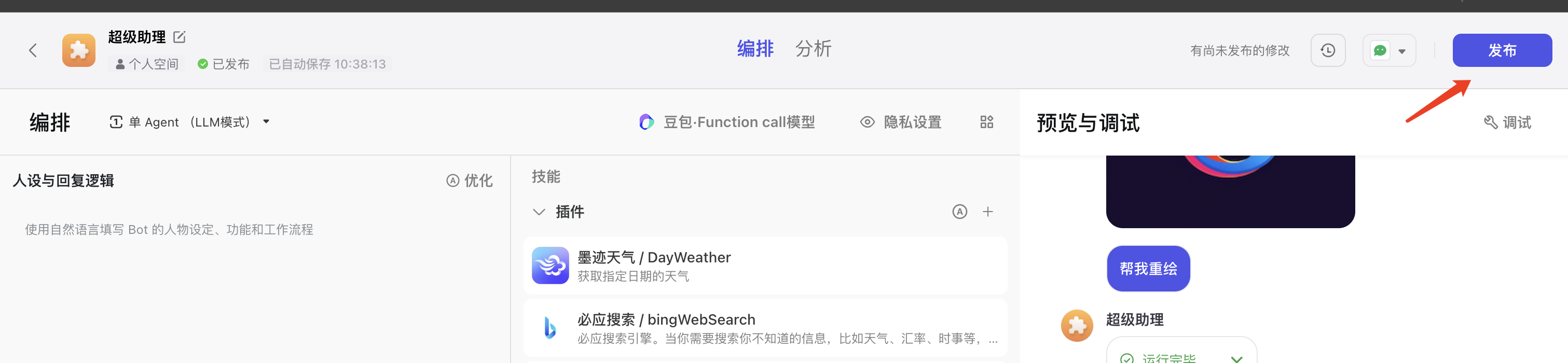 接着找到你在扣子制作的智能体,并执行发布