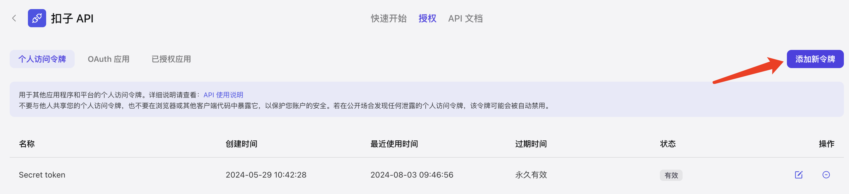 接着点击右边的【添加新令牌】