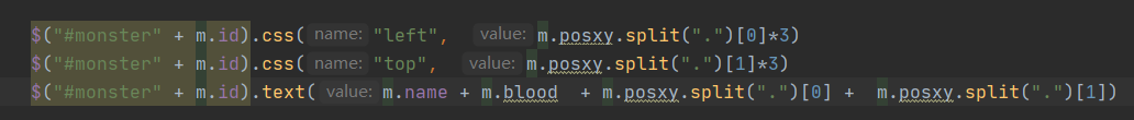 for (String poss: monster.getPosxy().toString().split(",")){