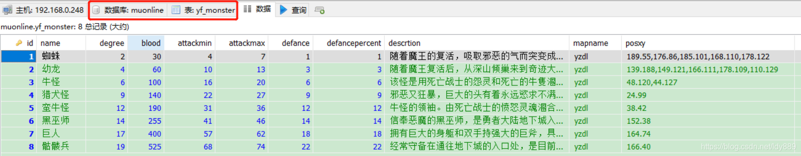 -- 正在导出表 muonline.yf_monster 的数据:~8 rows (大约)